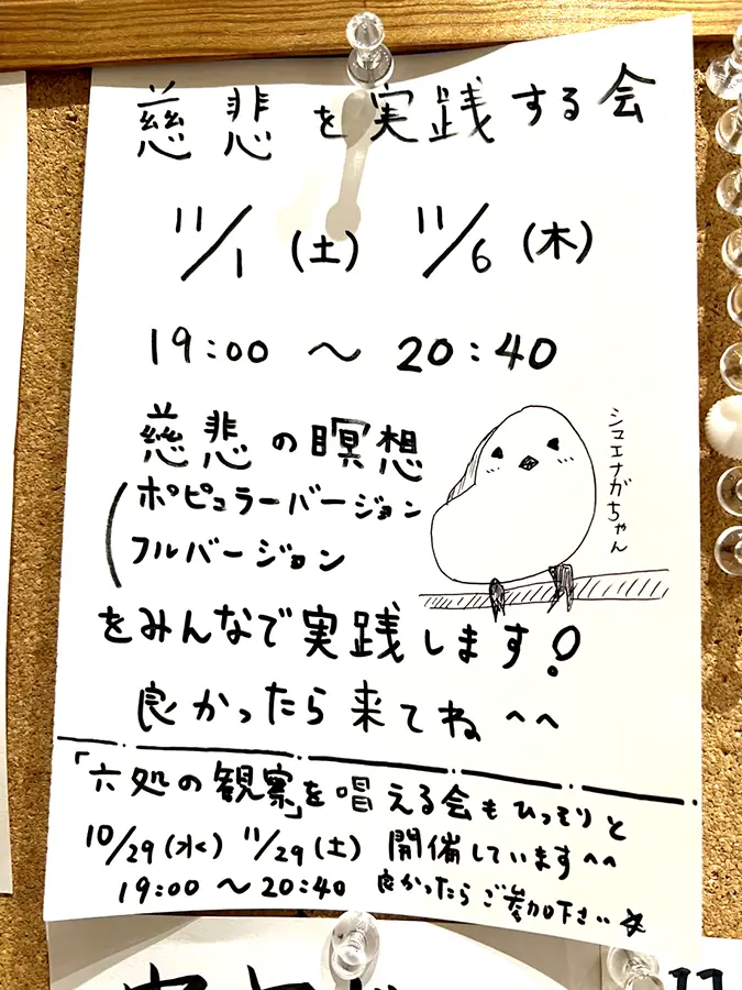 次の「慈悲を実践する会」は、11月1日(土)19時〜。土曜日の夜、ふるってご参加ください!