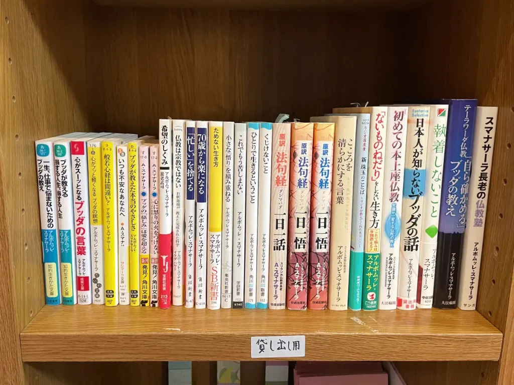 スマナサーラ長老のご著書を並べており、現在は書店では手に入らない本も含まれています。