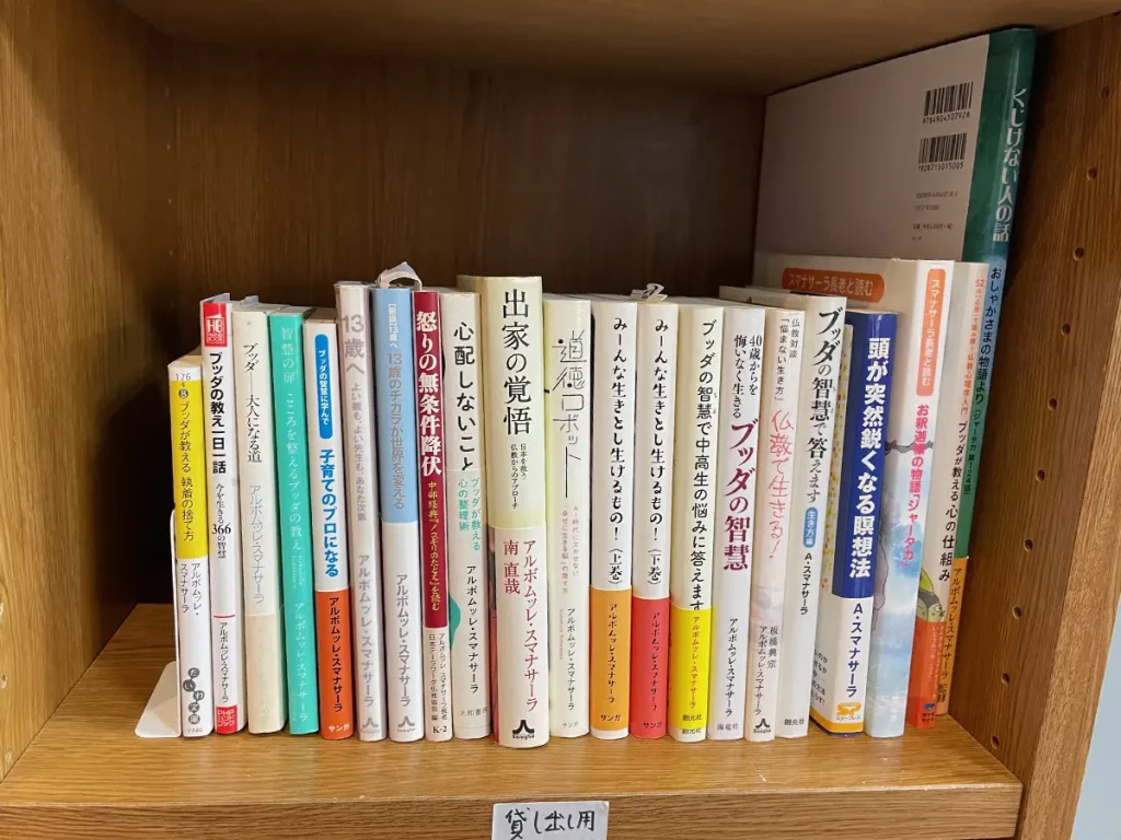 ゴータミー精舎にお越しの際は、ぜひ本棚ものぞいてみてください。