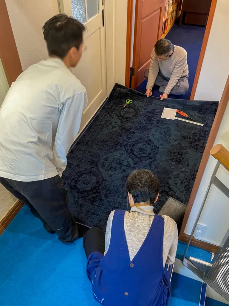 また、住職室の前のふかふかのカーペットを、寺猫サーリーちゃんが傷をつけてしまうので、その保護に新しいカーペットを敷きました。