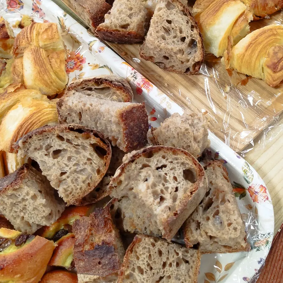 お昼を挟んで、(それぞれJICAの食堂やお弁当などを。精舎には柳会長お布施のパンやみかん、お菓子などもありました。)