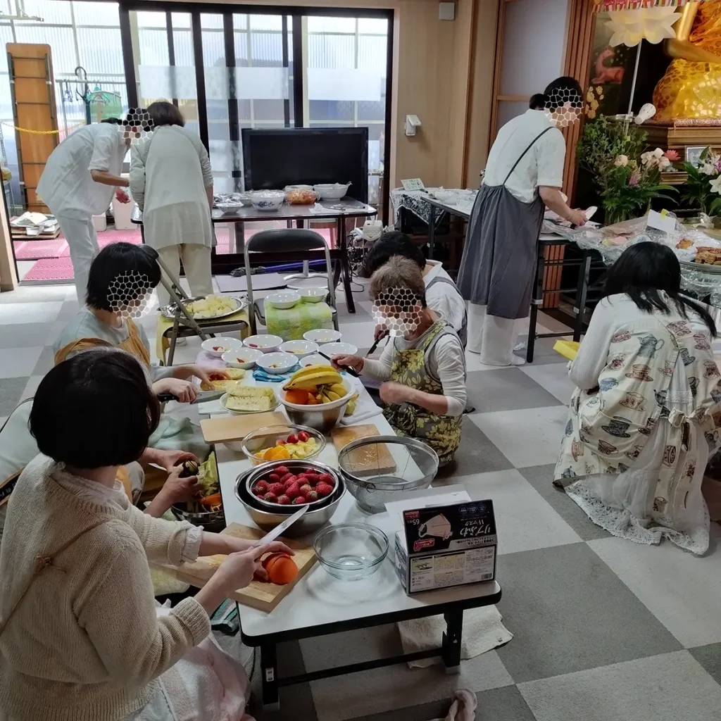 この前日は10:00から準備が行われ、二週間前(傘寿の会)にしまった食器や調理器具を再び出して洗って、飾りつけなどもしてくださいました。