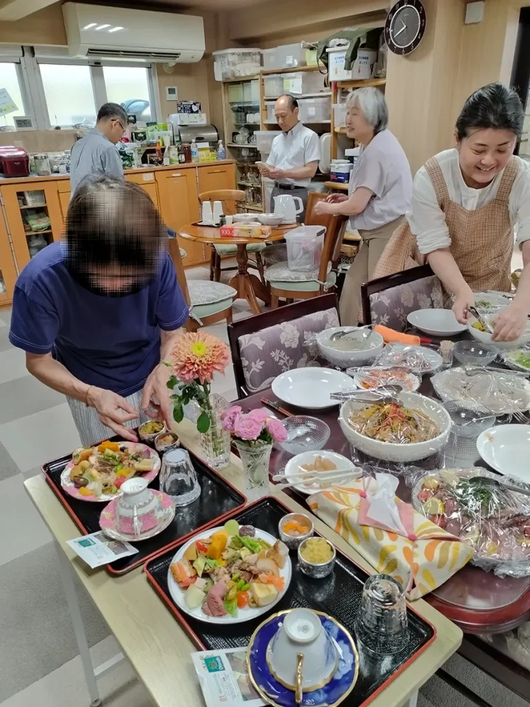 まずは、お食事のお布施。13人の方が集まり、和気あいあいと準備を進めました。