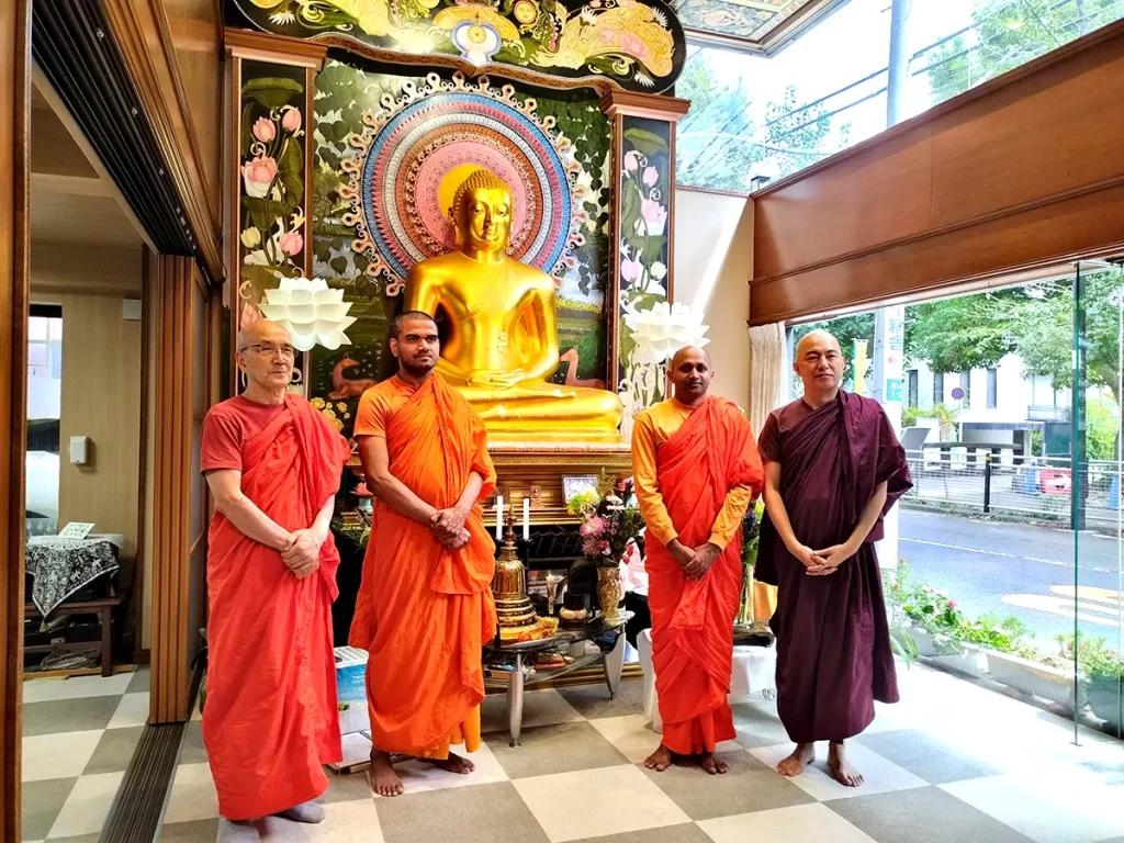 先日、スリランカのキリタラマヤ寺院よりパドゥマ比丘が来日され、合わせてお坊様4名でお布施をお受けくださいました。