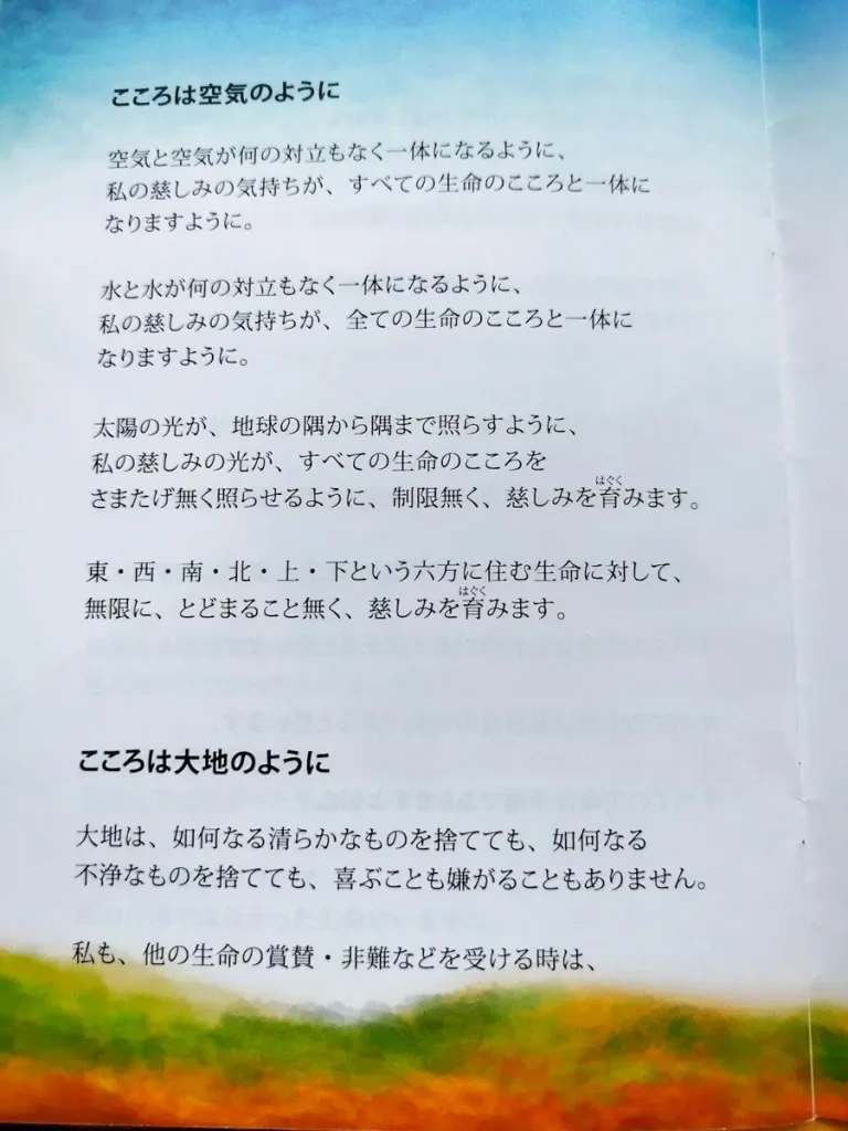 慈悲の瞑想フルバージョン、今月はこのセクションです。慈しみを実践している方々が精舎にいると思うだけで、良い影響を受けて、自分も慈悲の瞑想がんばろうと思ったりします。