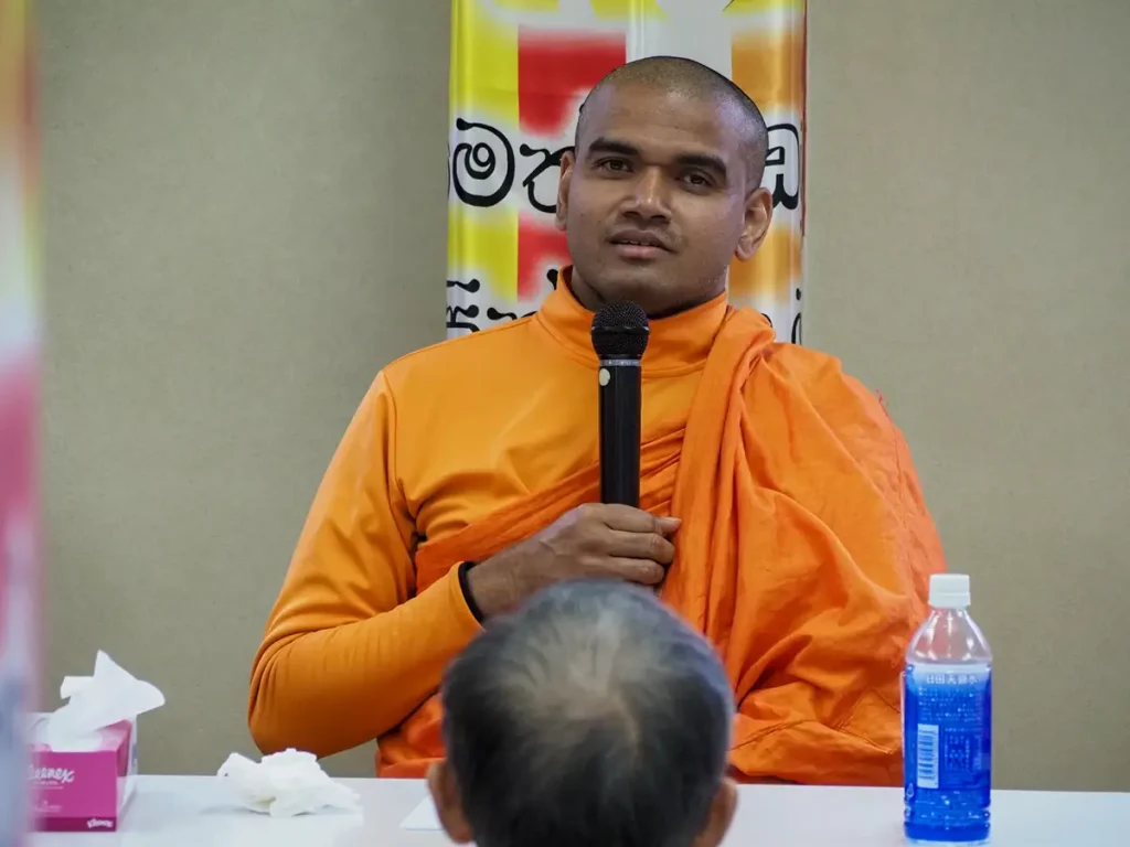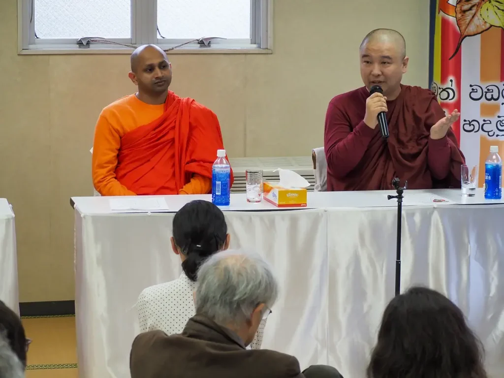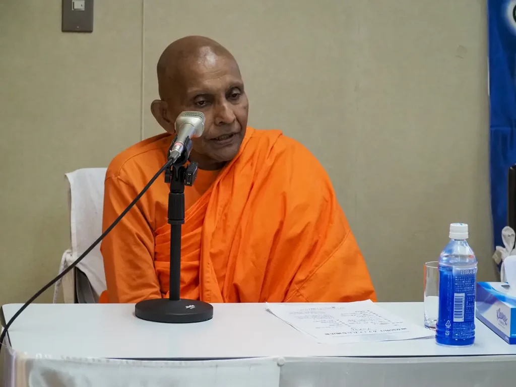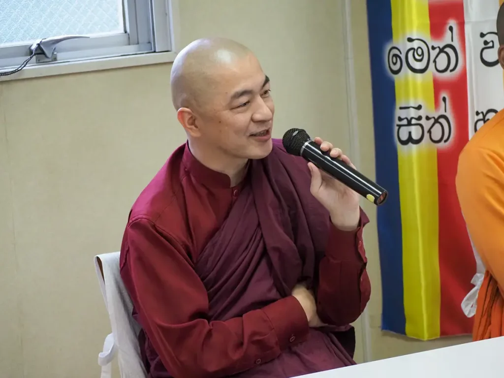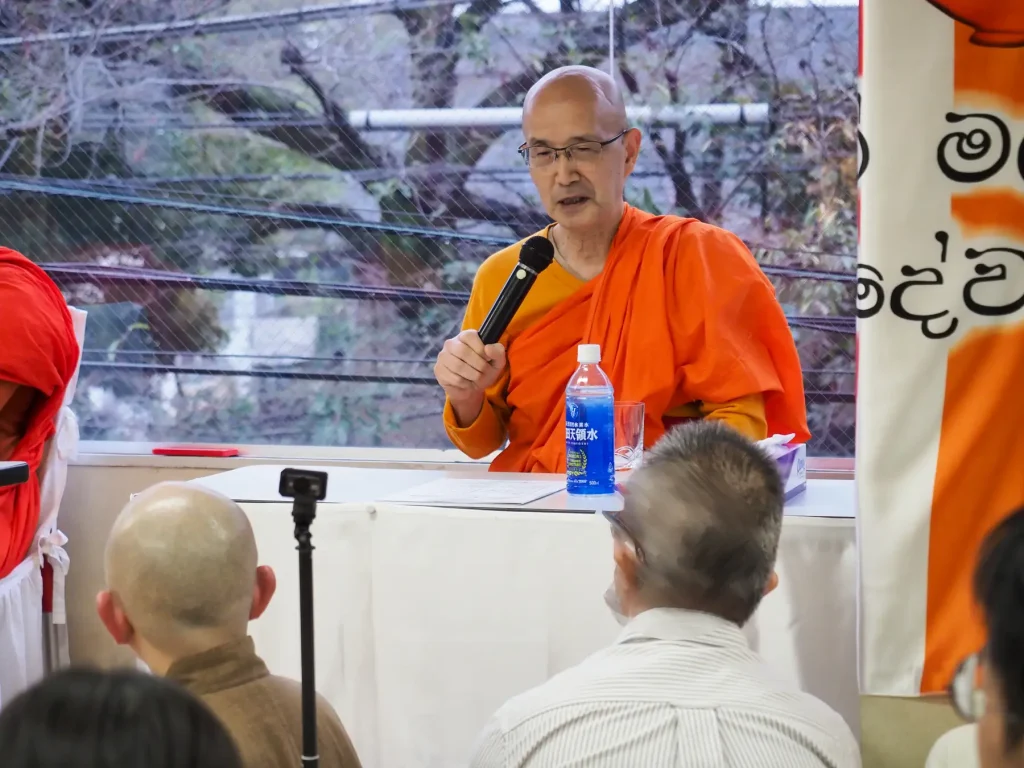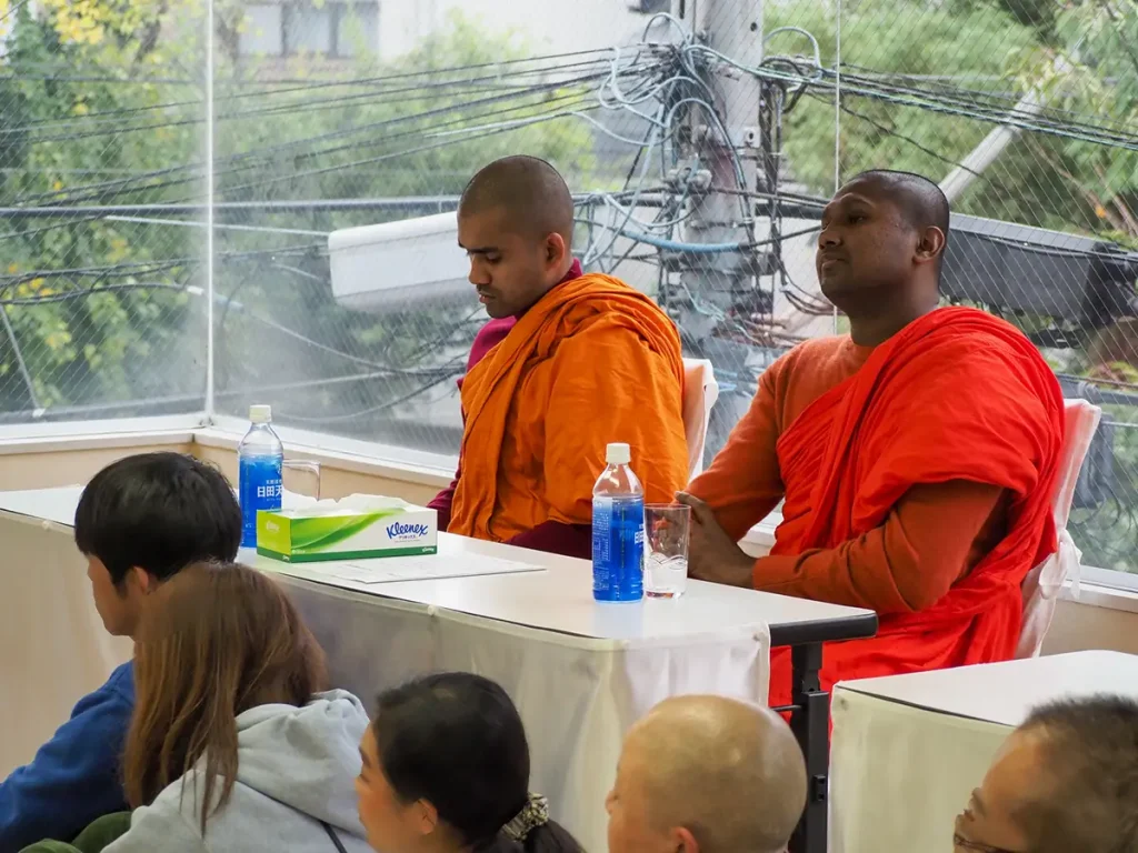 本堂では、ブッダプージャ、お坊様への食事・物品のお布施と続きます。昼休みを挟んで、午後にはスマナサーラ長老のお話がありました。
