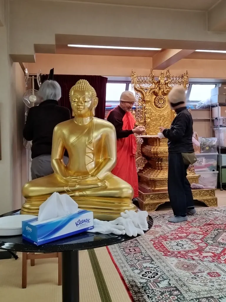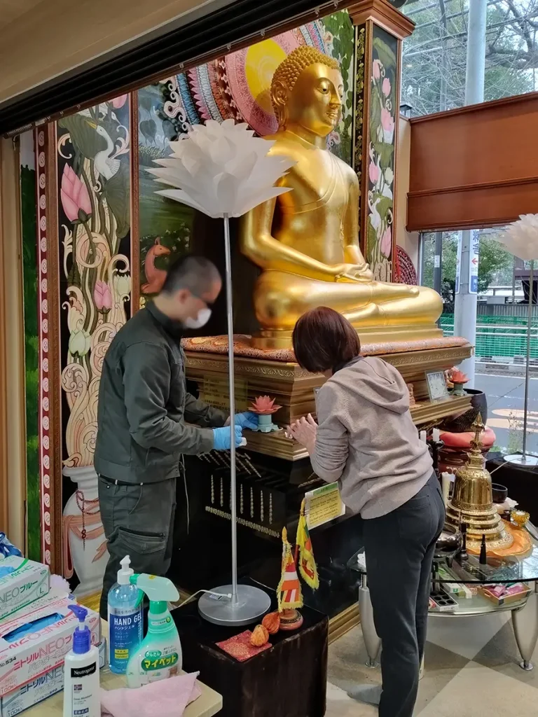 1Fも2Fも3Fも、お釈迦さま周りは念入りに。目には見えなくても、拭くと雑巾が結構汚れて、やはり日頃の塵が積もっているんだなと分かります。