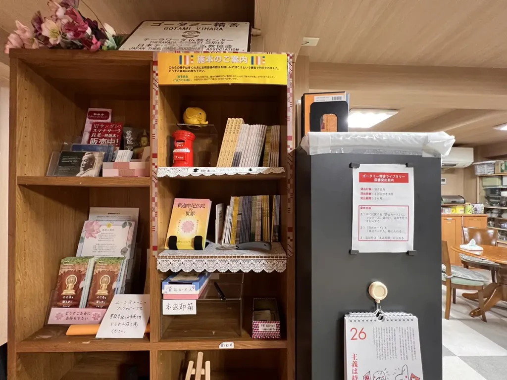 貸出図書はこのように充実いたしました。柳会長が、本の並び順にすごくこだわって丁寧に整えていらっしゃいました。サンガジャパンもあるし、アビダンマ講義シリーズもあるし、新書や文庫も充実、経典の解説も勢ぞろいし、協会発行の古い本もあります。きっとみなさまが智慧を育てていく助けになります。ぜひご活用ください。